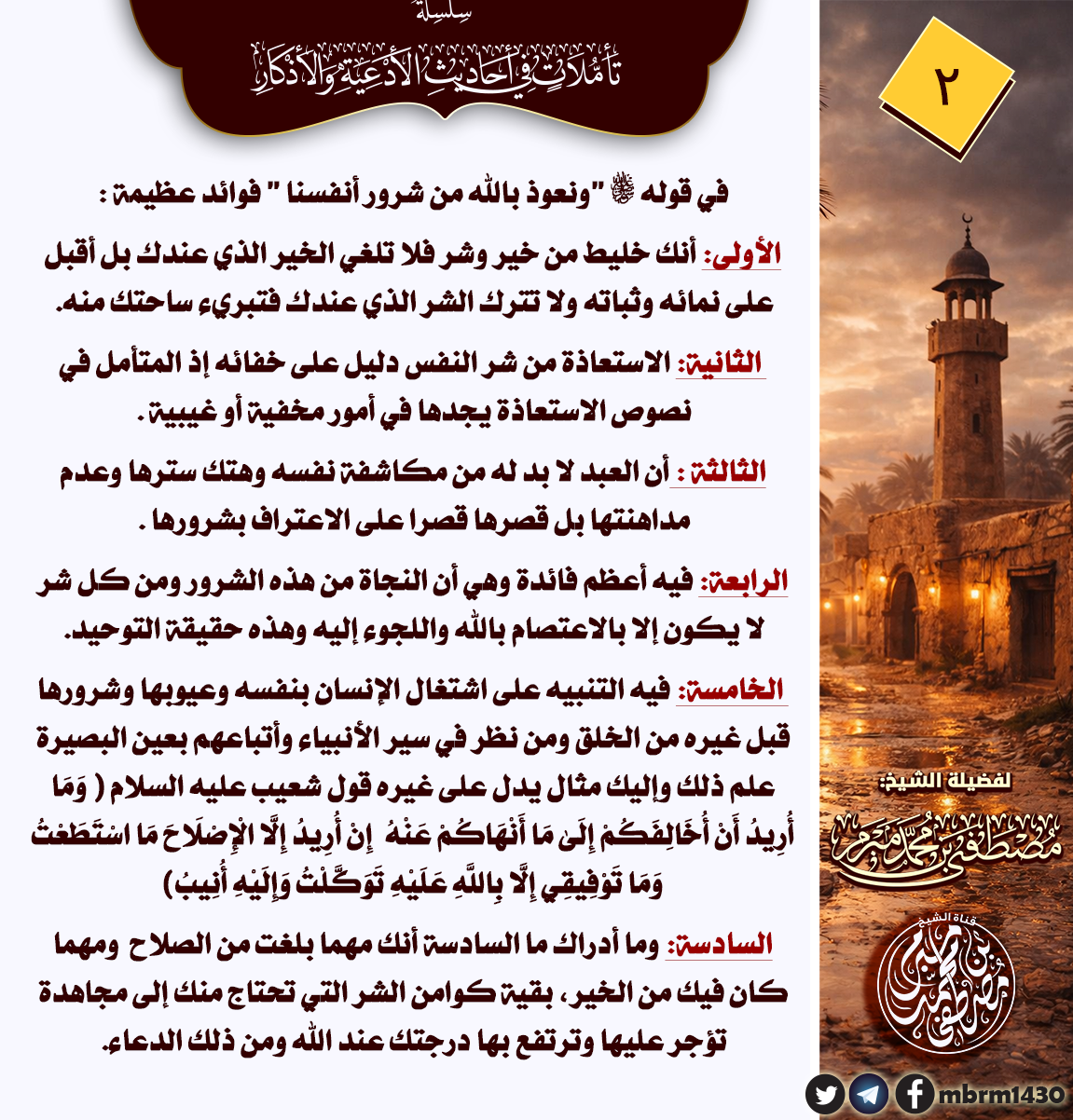 تأملات في أحاديث الأدعية والأذكار : الحديث الثاني